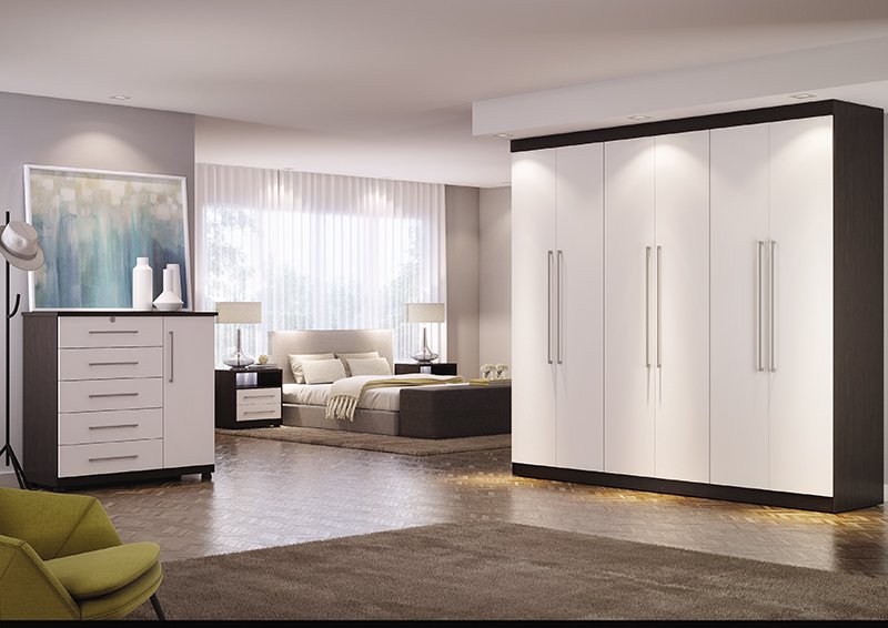 Roupeiro Ideal Corrediças Metálicas. Dobradiças Grandes de 35mm. Pés Opcionais Cromados. Disponível nas cores: Nogueira, Amantea, Nova Imbuia e Branco…